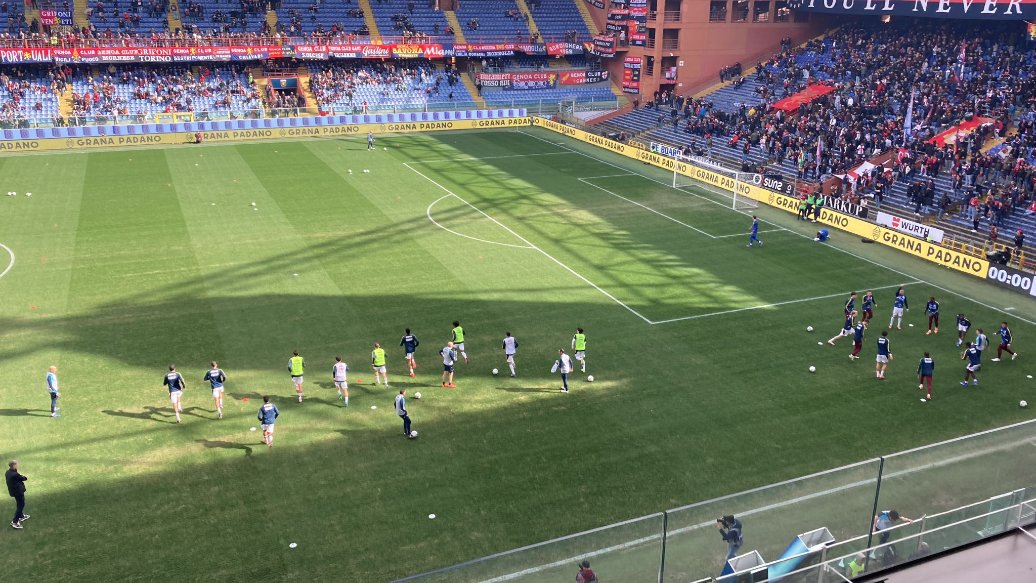 12.15 - Termina il riscaldamento a Marassi: i giocatori delle due squadre tornano negli spogliatoi