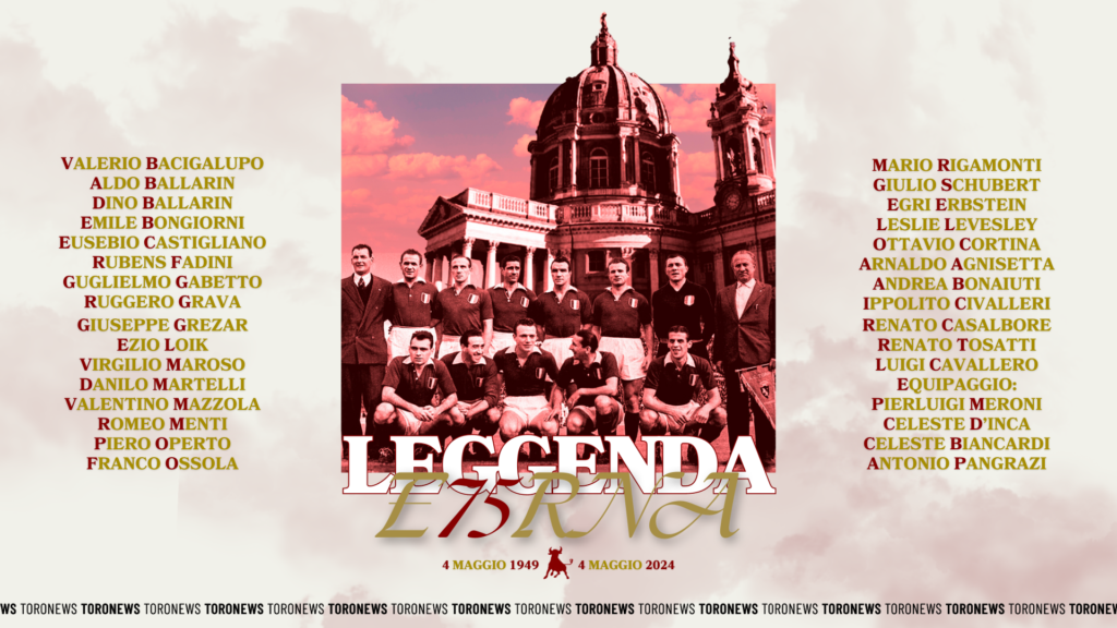 Oggi 4 maggio 2024 è il 75° anniversario della Tragedia di Superga, giorno in cui perse la vita la squadra del Grande Torino e i membri della dirigenza, dell'equipaggio e della stampa