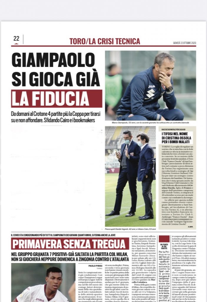 Video - Rassegna Stampa TN del 22/10/2020: “Giampaolo si gioca la fiducia”