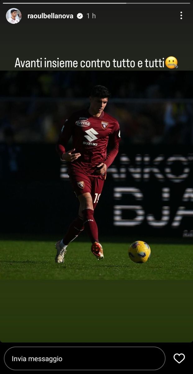 Raoul Bellanova sprona la squadra e tutto l'ambiente granata dopo il pareggio allo Stirpe e le decisioni arbitrali discutibili del direttore di gara. "Avanti insieme contro tutto e tutti", scrive l'esterno del Torino, messaggio seguito da un'emoji con la bocca cucita.