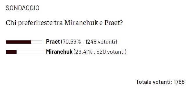 I risultati del sondaggio nel quale avevamo chiesto ai nostri lettori di Toro News la loro personale preferenza tra Miranchuk e Praet.