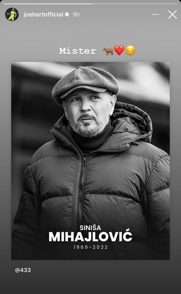 Joe Hart ha difeso i pali del Torino nell'annata 2016-2017, proprio quando Mihajlovic era alla guida della squadra. Con un storia Instagram, l'inglese ha voluto dedicare anch'egli un pensiero al suo vecchio Mister.