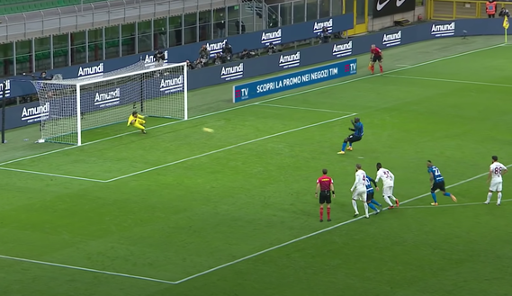 Allo scadere l'Inter chiude definitivamente i conti. I granata sono sbilanciati in avanti per la disperata ricerca del pari. Sulla sinistra Perisic lancia d'esterno in profondità Lukaku, che scatta sul filo del fuorigioco.