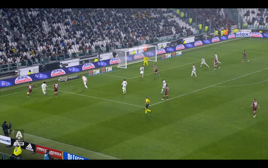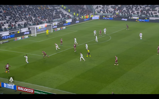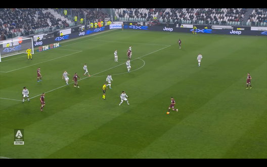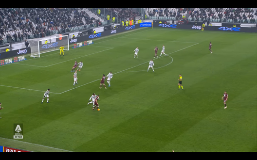 Il numero 14 granata conferma ancora una volta le sue ottime capacità nei dribbling e con un doppio passo riesce a disorientare il terzino della Juventus guadagnando il fondo del campo per cercare il cross col suo sinistro (Immagine 4).