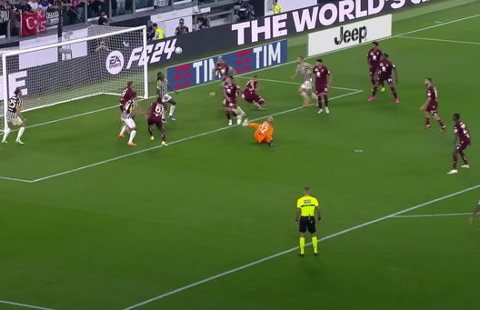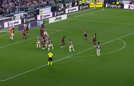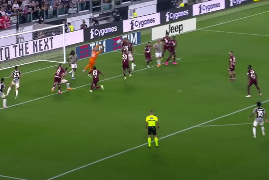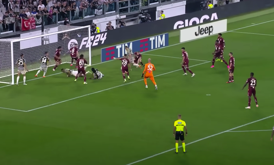 Il gol del vantaggio bianconero nasce da un errore di Ilic, che con un retropassaggio sbagliato regala palla alla Juventus. I bianconeri conquistano un calcio d'angolo. Importante notare la posizione di Kean su Milinkovic-Savic. Il portiere serbo è disturbato dall'attaccante della Juventus. Una situazione studiata proprio per disturbare le uscite dell'estremo difensore granata.
