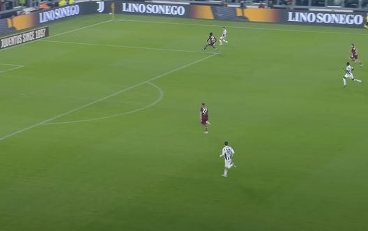 Nel finale la Juventus raddoppia. I granata sono sbilanciati in avanti alla ricerca del pari e i bianconeri ripartono con la velocità di Conceiçao.