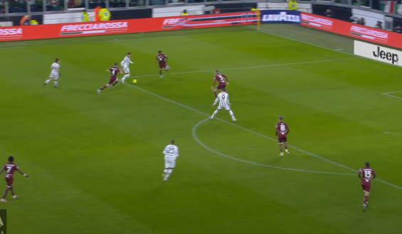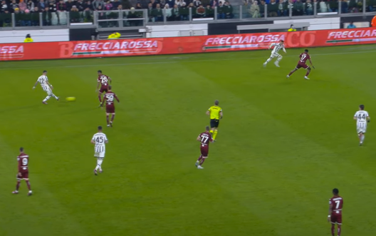 Kostic riesce poi ad andare al cross con la difesa del Toro non perfetta, perché Buongiorno sta ancora rientrando, Ilic lo copre e Schuurs è troppo oltre il primo palo. Così Rodriguez è obbligato ad accentrarsi.