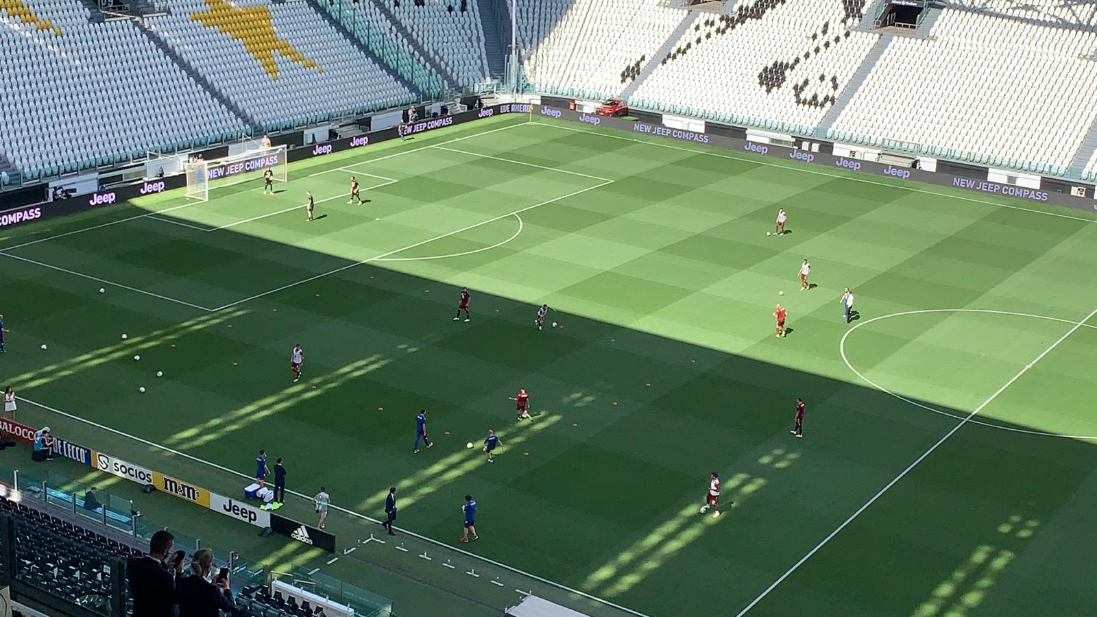 16.42 Anche i bianconeri entrano in campo per il riscaldamento