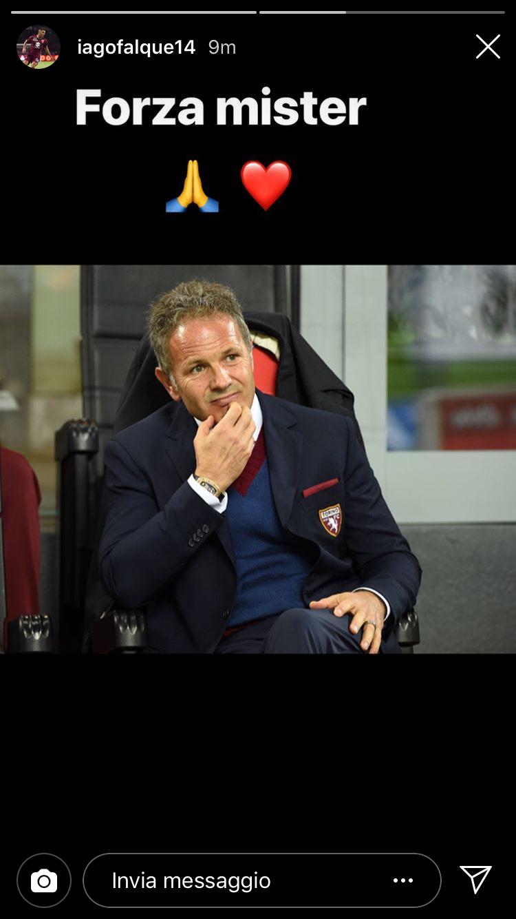 Pure Iago Falque si unisce ai suoi compagni. "Forza mister" è il messaggio di incoraggiamento verso Miha.