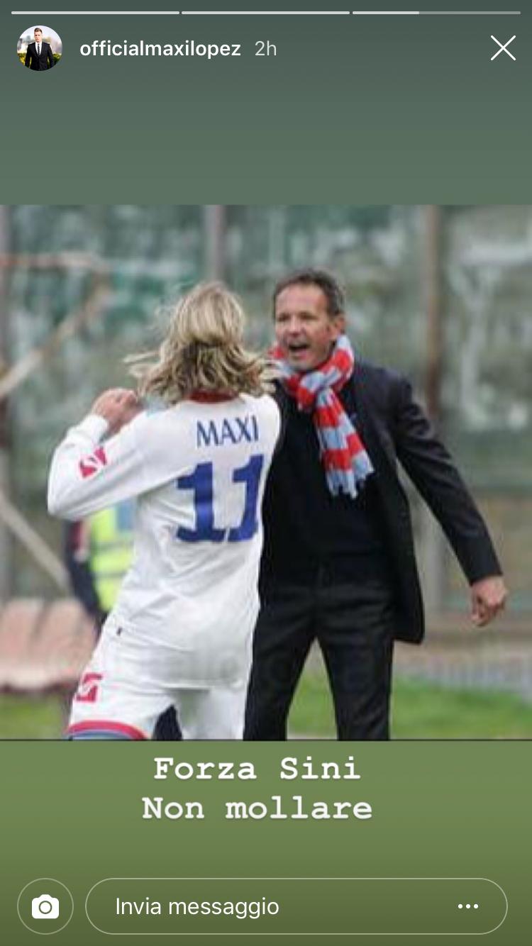 Maxi Lopez ha avuto Mihajlovic allenatore prima al Catania e poi anche al Toro. Quest'ultima esperienza più controversa, con il tecnico che lo ha rimproverato a più riprese per la condizione fisica, definendolo anche "lavatrice" (leggi qui). I due sono comunque rimasti in buoni rapporti, visto che hanno vissuto insieme fasi importanti delle relative carriere e l'argentino lo incoraggia: "Forza Sini! Non mollare".