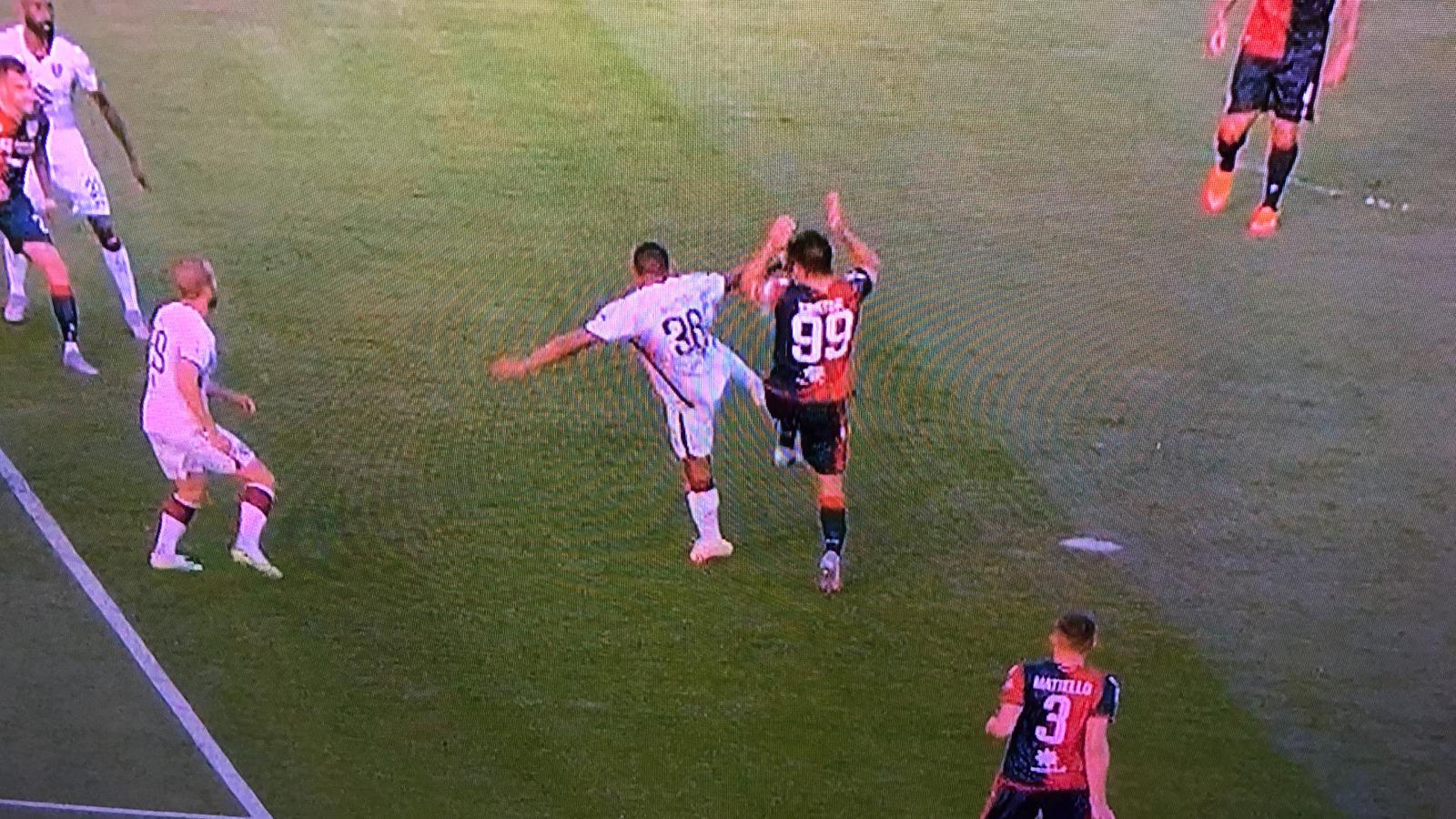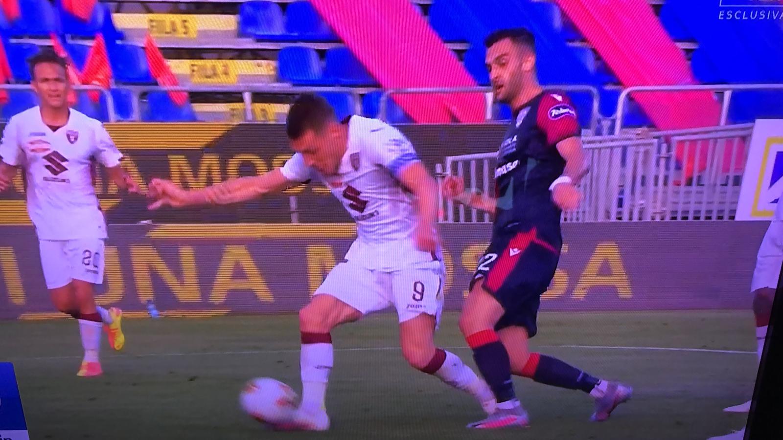 Al 17’ il primo assistente sbandiera sul 2-0 per fuorigioco di Lykogiannis, ma le linee Var lo smentiscono. E' Aina a tenere in gioco l'esterno greco del Cagliari che poi mette a segno l'assist per Simeone. Poi, episodio dubbio in area Cagliari tra Bremer e Simeone dopo una respinta indecisa di Cragno. Bremer prova a calciare ma Simeone glielo impedisce lanciandosi tra nello spazio tra il brasiliano e la palla: intervento sicuramente scomposto, c'è da dire che è prima Bremer a impattare Simeone e non viceversa e che alla fine l'attaccante argentino tocca il pallone. Il Var non interviene perchè Mariani è ben piazzato e prende una decisione soggettiva autonoma, quella di lasciar correre. Al 37’ Mariani lascia giocare ma Lykogiannis sbilancia sottorete Belotti che riesce comunque a tirare: ma c'è prima la strattonata e poi uno sgambetto del difensore sull'attaccante al momento del tiro. C'erano gli estremi per il calcio di rigore, ma Mariani lascia giocare anche convinto dall'onestà di Belotti che tira comunque invece di lasciarsi andare a terra come avrebbe potuto fare.