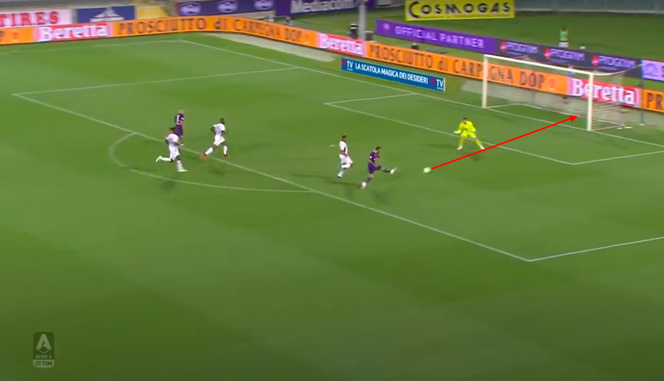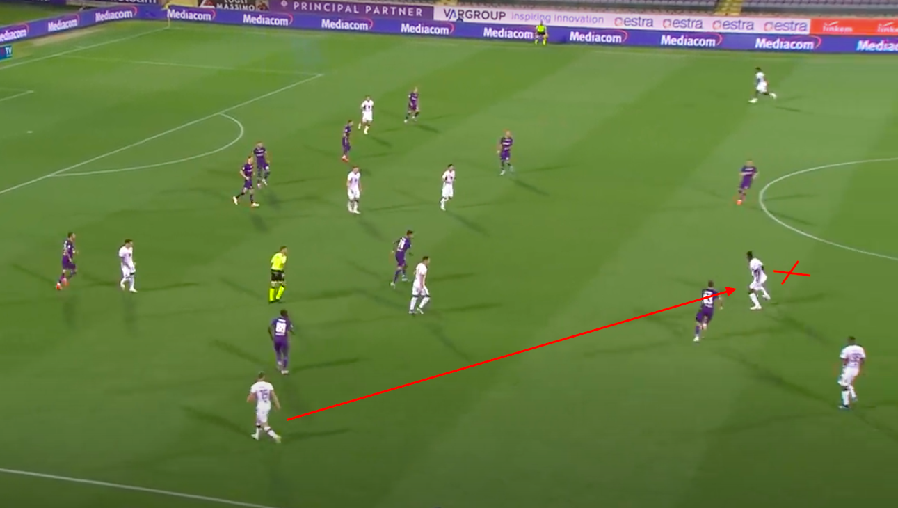 Meité è lentissimo nella reazione e non riesce a stare dietro al numero 7 viola: altro errore grave, chiunque avrebbe strattonato Ribery prendendosi un giallo tattico. A quel punto c'è il contributo di Nkoulou: è un'azione difensiva che ricorda quello svarione clamoroso contro il Wolverhampton perché invece di scappare stringendo verso Bremer e chiudere lo spazio per l'imbucata a Cutrone, Nkoulou si allarga misteriosamente verso la sua destra lasciando una prateria per il filtrante del francese.
