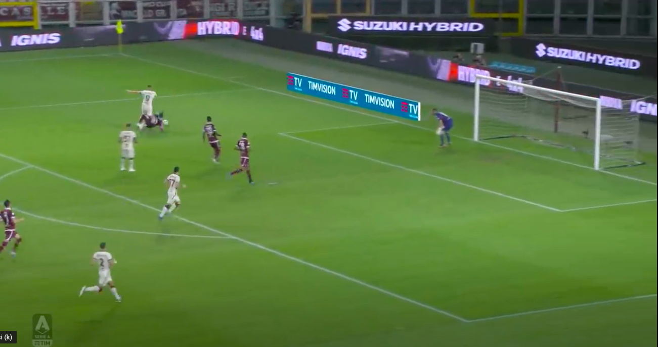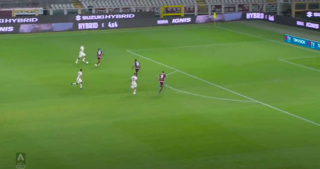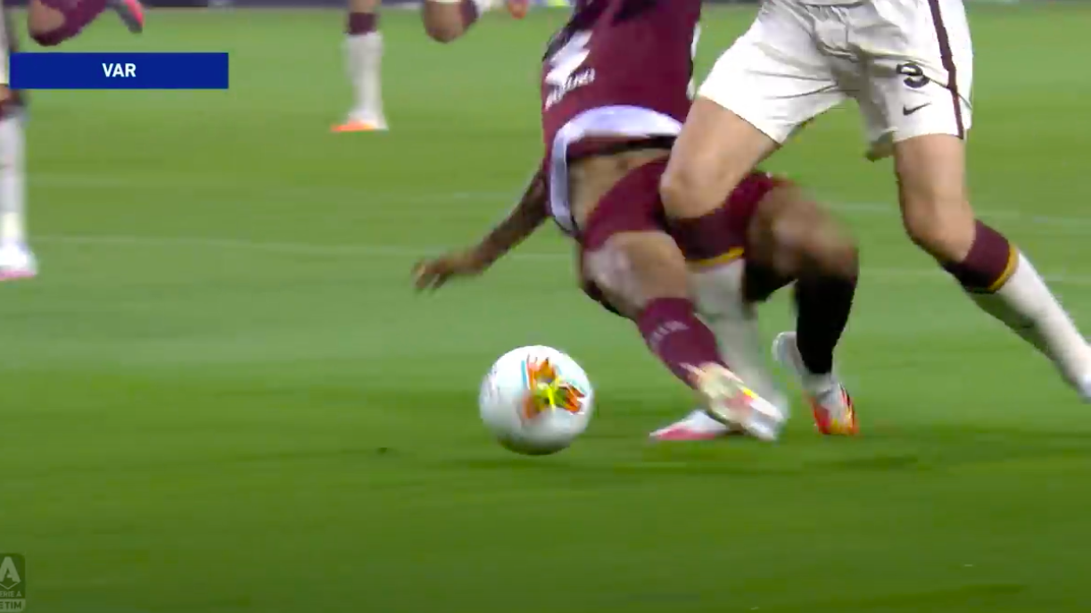La differenza la fa proprio Dzeko al limite dell'area: prima rallenta, poi riparte in velocità con un doppio passo verso sinistra che ruba un metro e mezzo a Djidji. Invece di temporeggiare, il numero 30 del Toro entra in maniera scomposta travolgendo Dzeko al posto di accompagnarlo all'uscita (era in posizione decentrata e a centro area c'erano Nkoulou e Bremer). Rigore sacrosanto, trasformato da Diawara nonostante il tocco di Ujkani. 1-3.