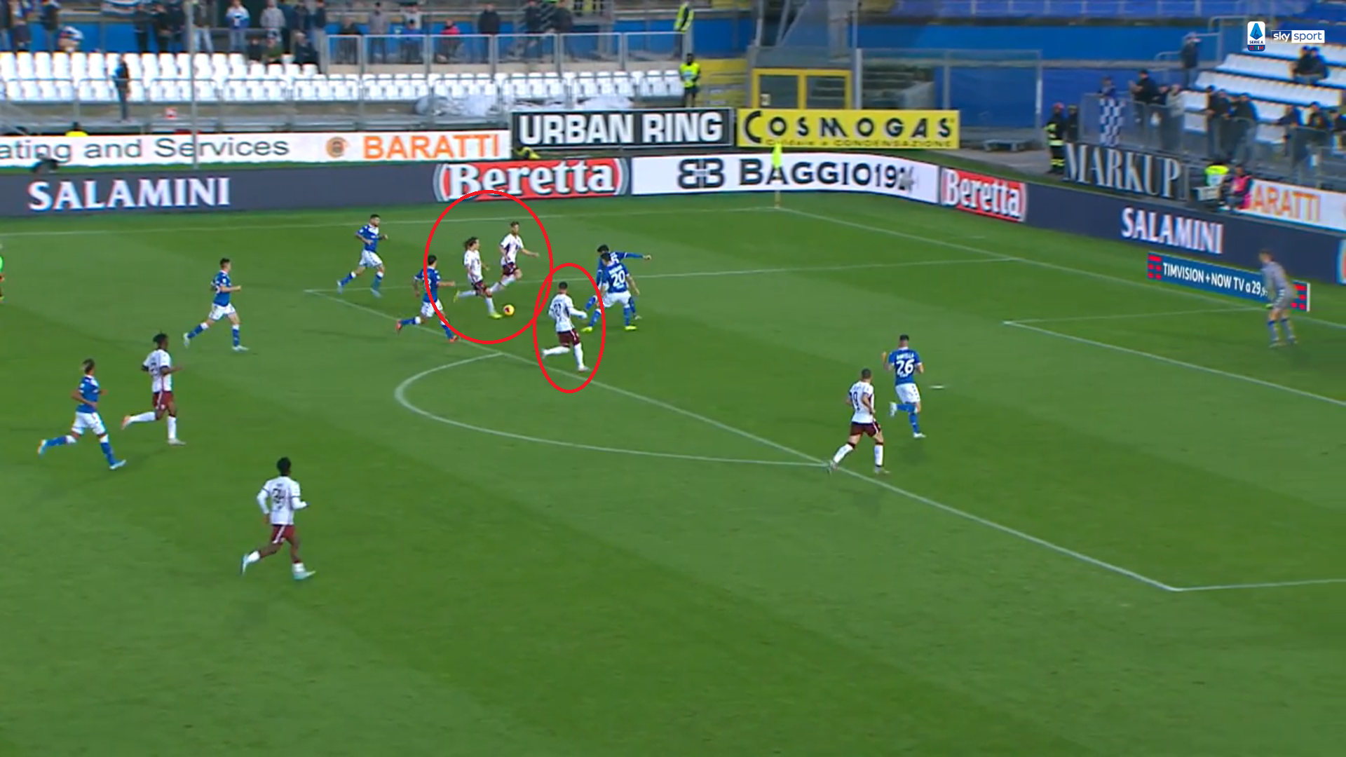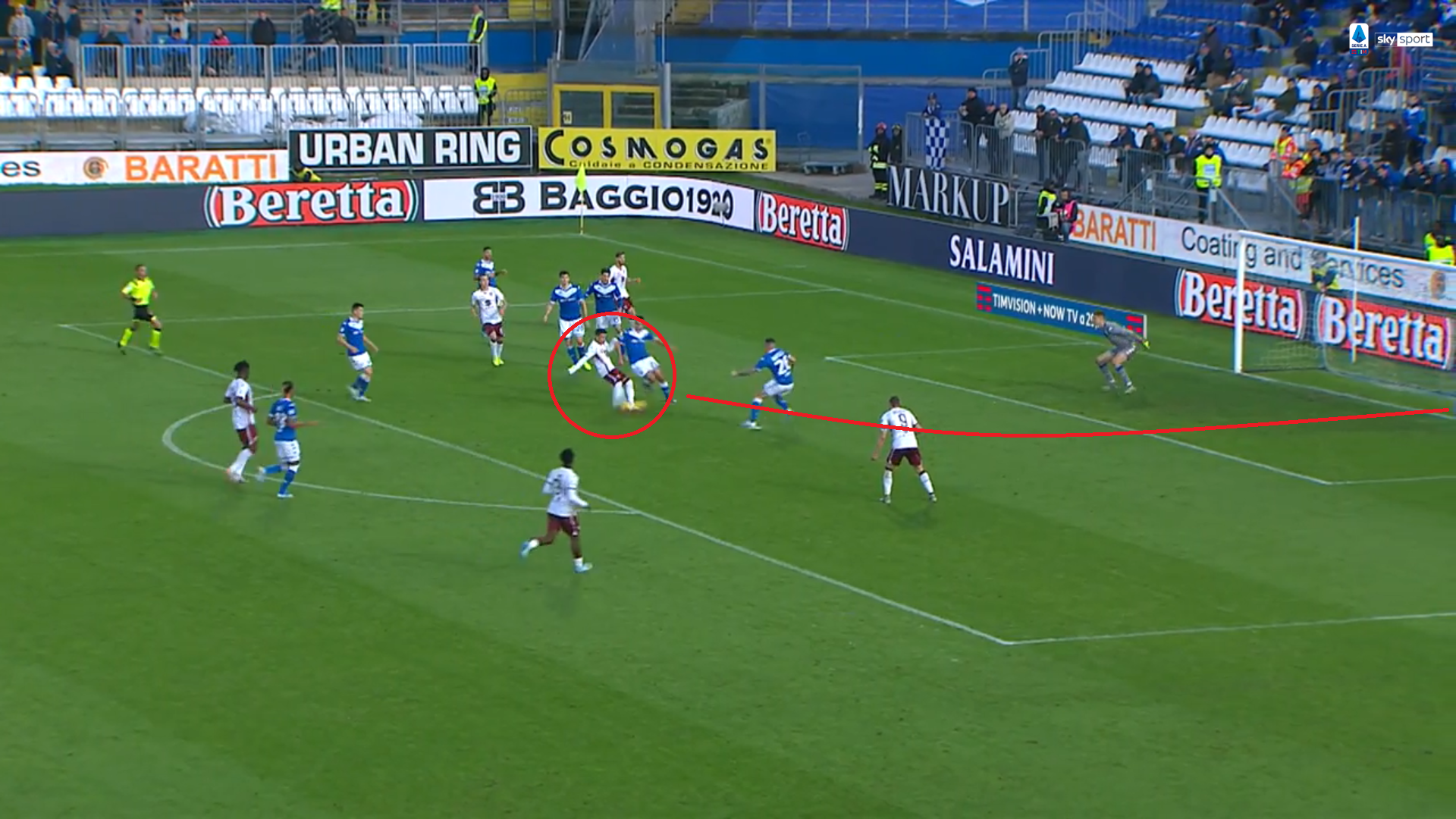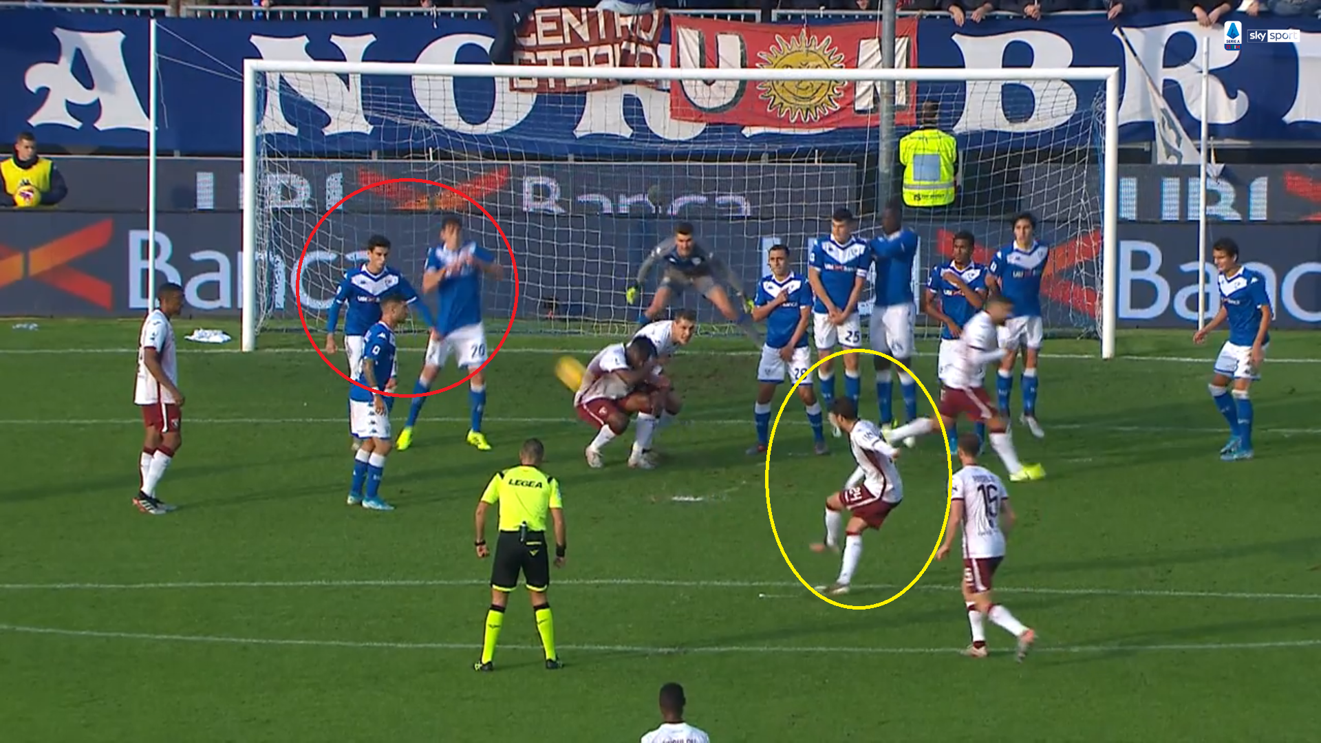 La prima marcatura nasce con un calcio di punizione battuto da Verdi: la palla sbatte sul braccio del difensore, l'arbitro non ha dubbi e indica il dischetto.