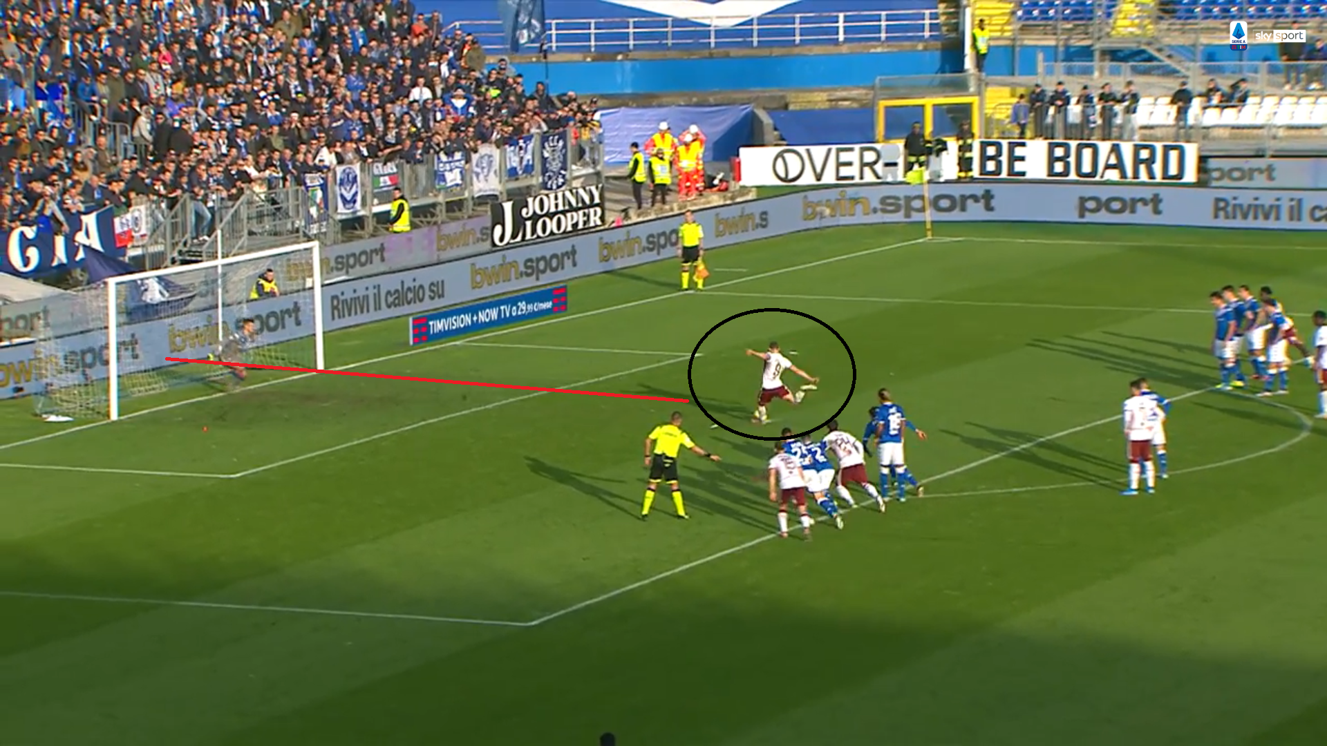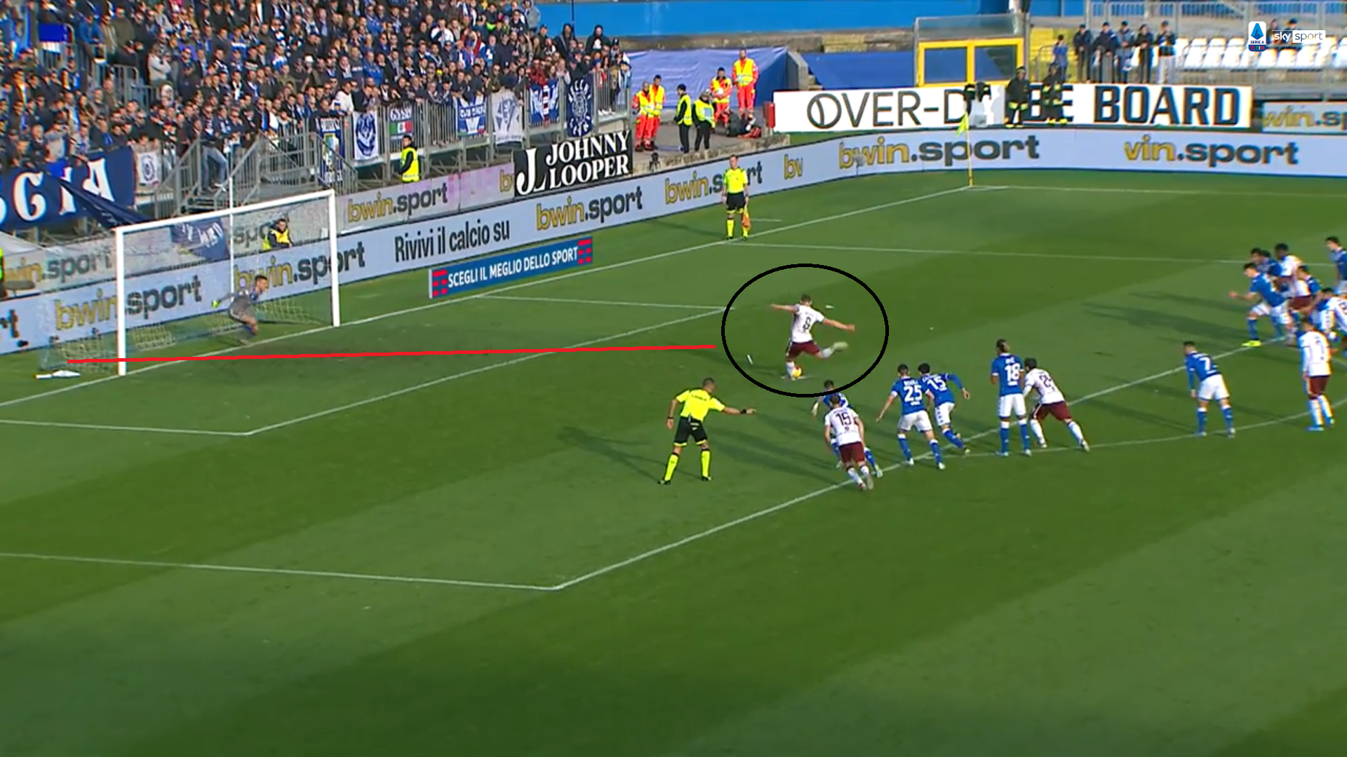 Il Gallo va per tirare il rigore, con la sua consueta tranquillità: il tiro è perfetto, preciso tanto da battere il portiere del Brescia.