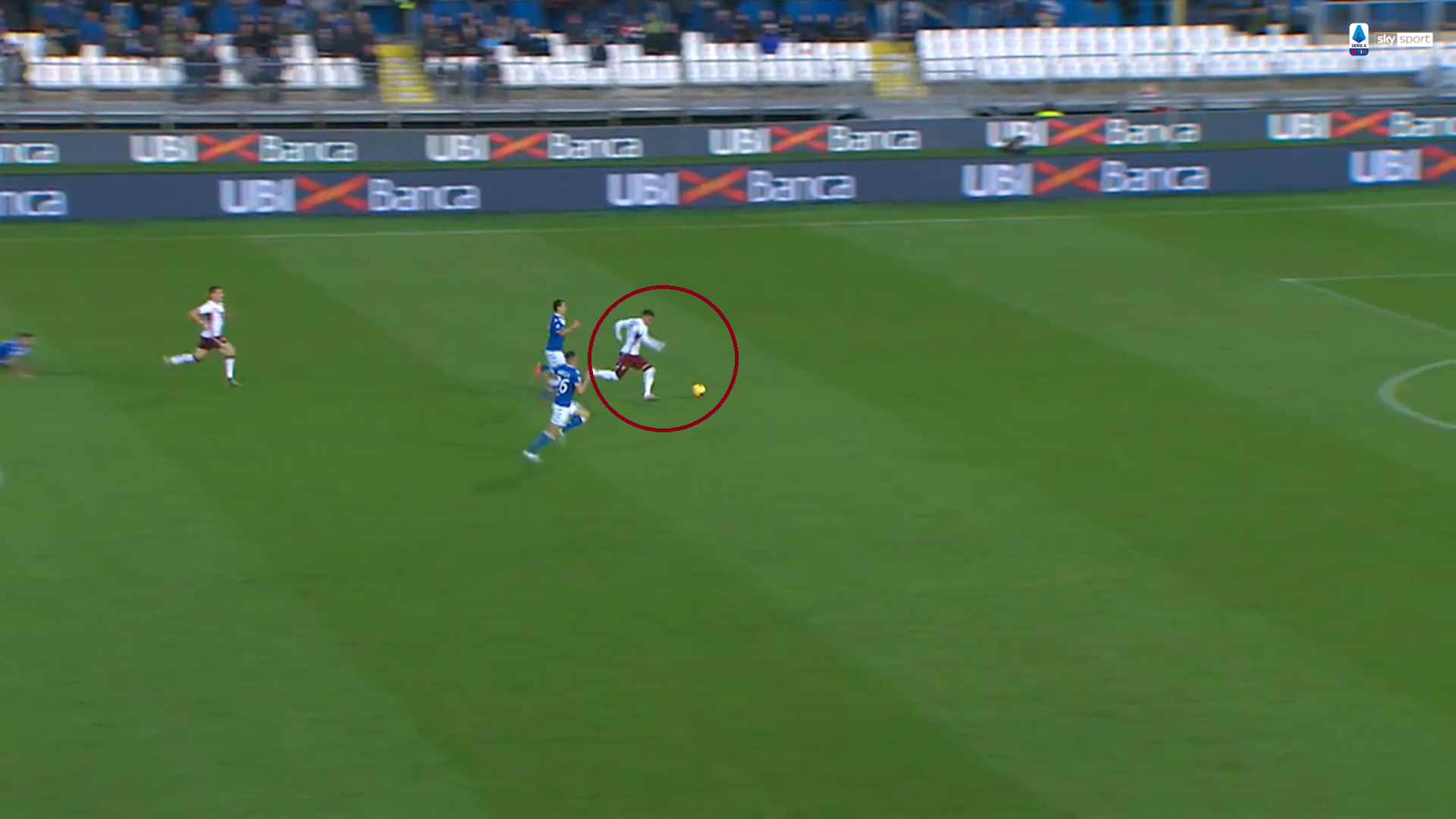 Bravissimo a tenere a distanza i difensori e freddamente a colpire il pallone ancora a giro, ingannando il portiere e realizzando il poker granata.