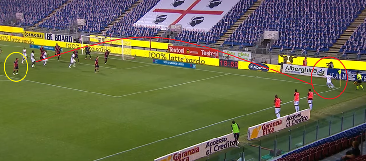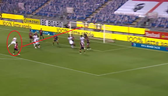 Cross dalla destra, Belotti completamente da solo ha avuto il tempo di guardare la palla, coordinarsi e sparare la palla in rete battendo Cragno con un grande destro al volo. Bello il gesto tecnico del capitano granata, che ha portato all'undicesimo gol in campionato.
