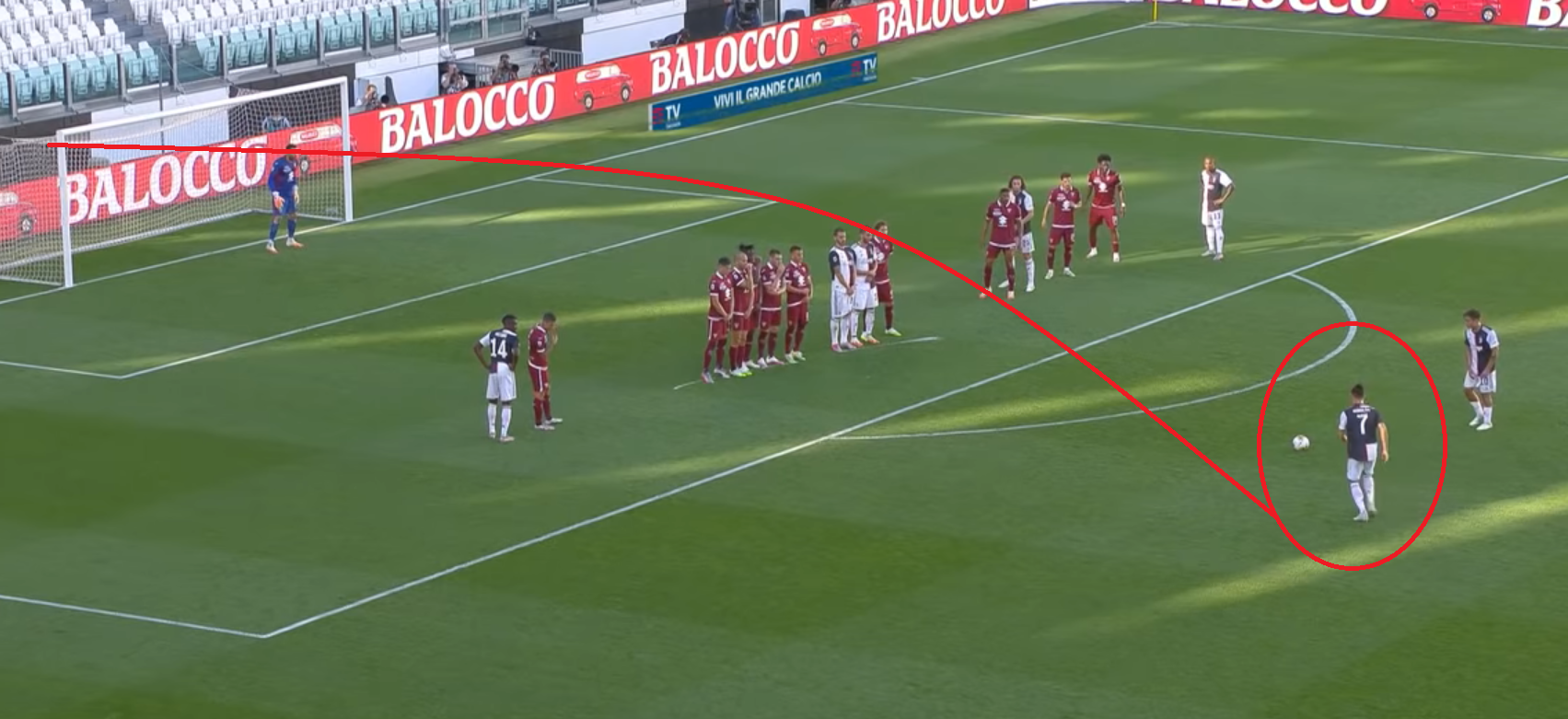 Dopo una reazione granata, è arrivata una batosta da calcio di punizione. Ronaldo ha segnato la sua prima rete da calcio da fermo con la Juventus, battendo Sirigu di pochissimo. Il portiere granata ha sfiorato la sfera ma non è bastato. Esecuzione magistrale del portoghese.