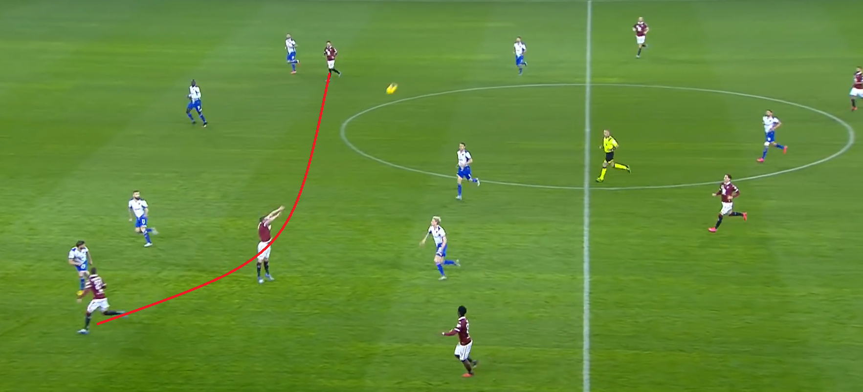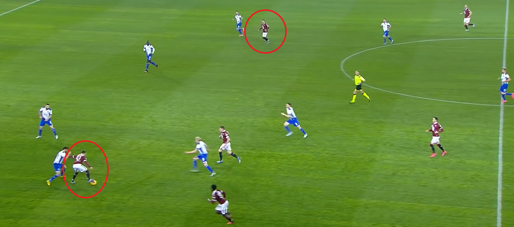 Lo spagnolo ha gestito bene il pallone eludendo il primo pressing, spostandosi verso il centro del campo e guardando con gli occhi Verdi dalla parte opposta del campo.