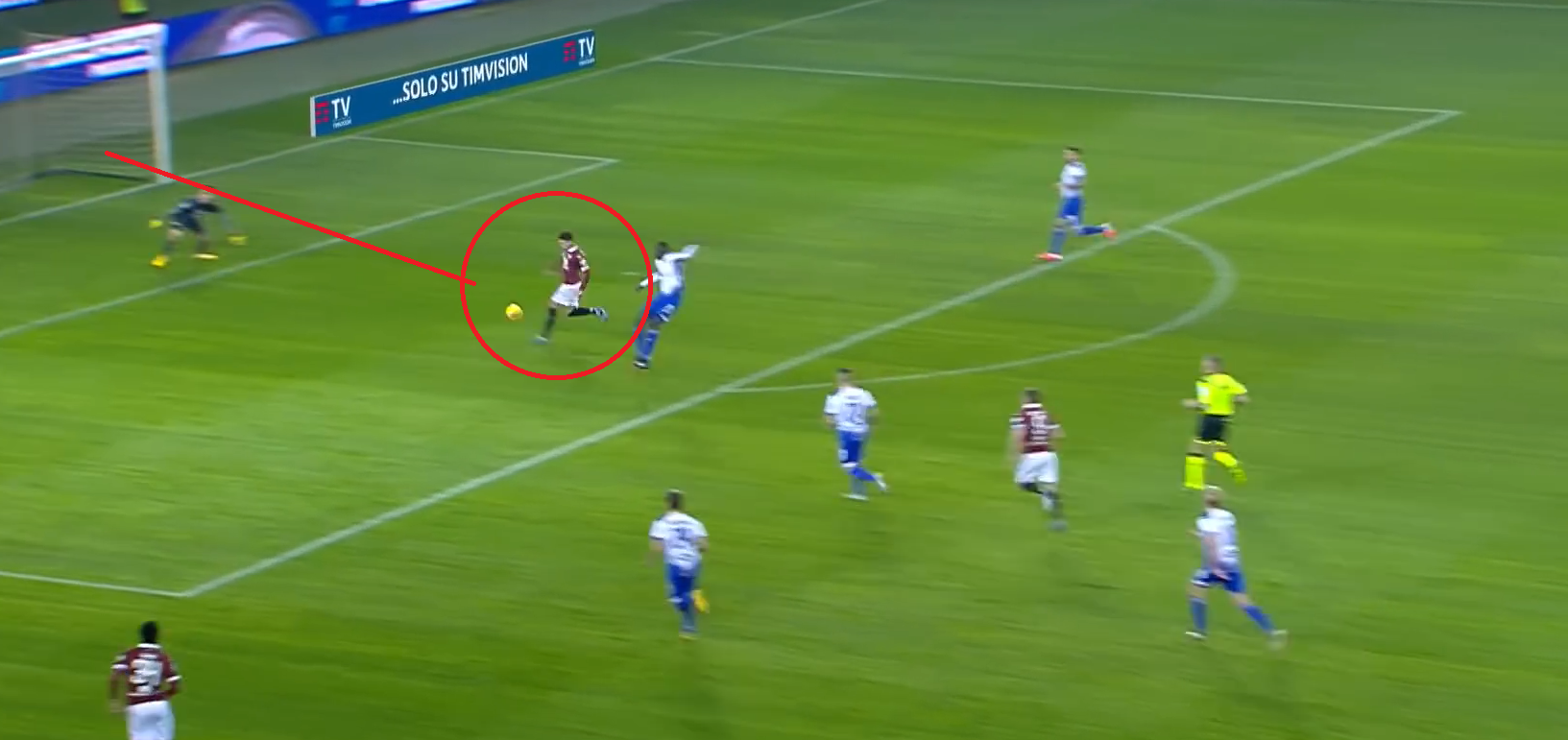 Il primo gol dei granata è arrivato dopo un'ora di gioco, con il rilancio di Sirigu molto preciso per la testa di Belotti, che ha spizzato molto bene verso il compagno Berenguer.