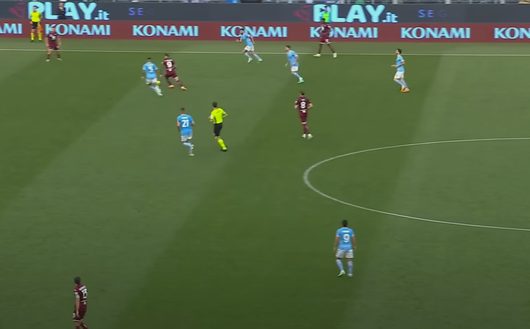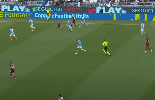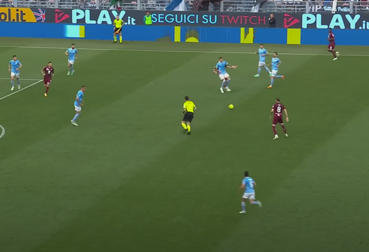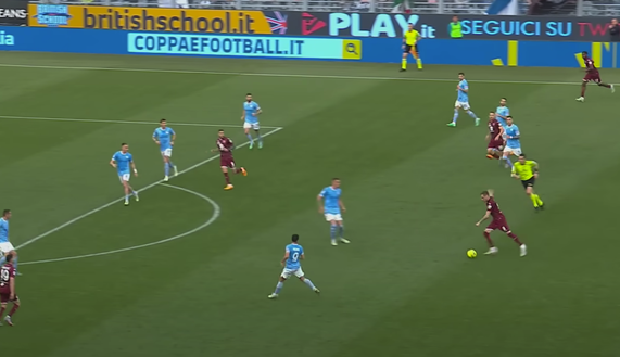 Nel finale del primo tempo il Torino passa in vantaggio grazie a Ilic. Tutto nasce a destra, dove Singo appoggia per Sanabria che si è abbassato per costruire con la squadra.