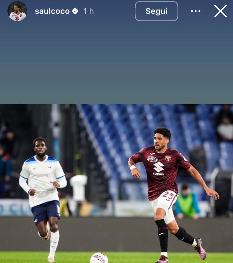 Uno dei giocatori che ha festeggiato per il gol di Gineitis è stato Saul Coco. Il numero 23 granata ha pubblicato su Instagram un'esultanza con il suo compagno di squadra lituano e ha poi aggiunto anche alcune foto della gara di ieri festeggiando la buona prestazione e il punto raccolto su un campo difficile come quello della Lazio.