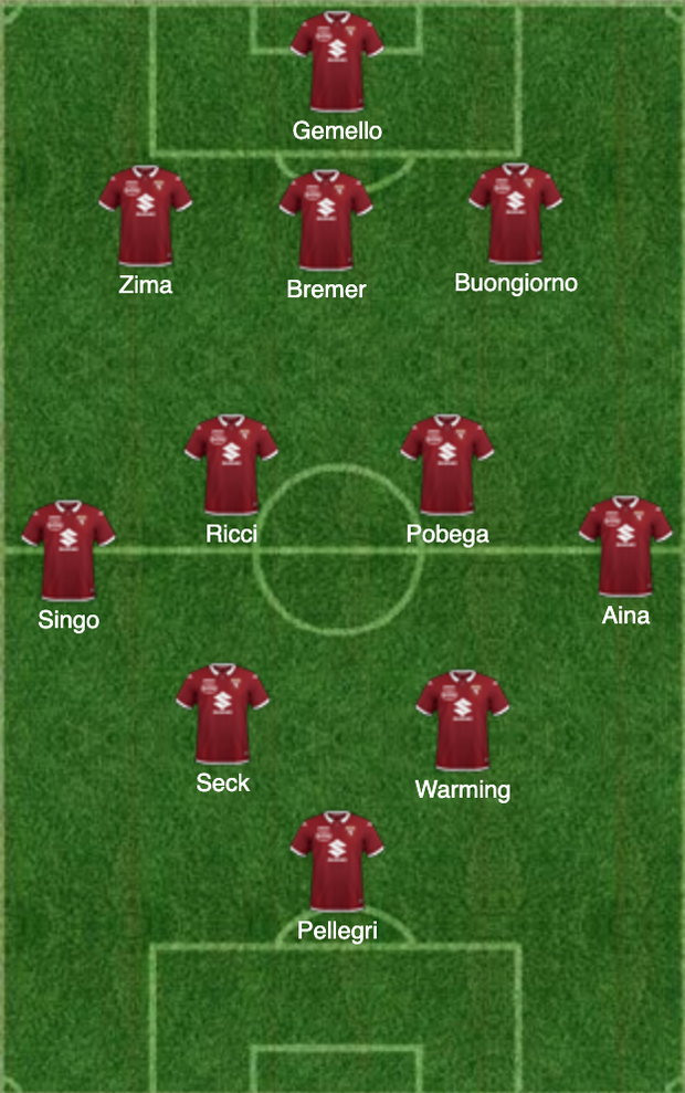 Il Toro C potremmo anche definirlo il Toro del futuro. Ruolo per ruolo sono stati inseriti i giocatori più giovani. A partire dalla porta dove Gemello ha già dimostrato affidabilità. In difesa il trio Zima-Bremer-Buongiorno già visto nel Toro B, così come la coppia di centrali Ricci-Pobega. Sulle fasce Singo e Aina, a lungo i titolari del Toro di Juric. In avanti invece Pietro Pellegri, che si gioca una buona chance ora nel Torino e chissà che non possa diventare il prossimo riferimento offensivo dei granata. Alle sue spalle il tandem Seck-Warming. Due ragazzi che al momento partono chiaramente indietro nelle gerarchie, ma chissà, magari con il passare delle giornate sapranno ritagliarsi i loro spazi.