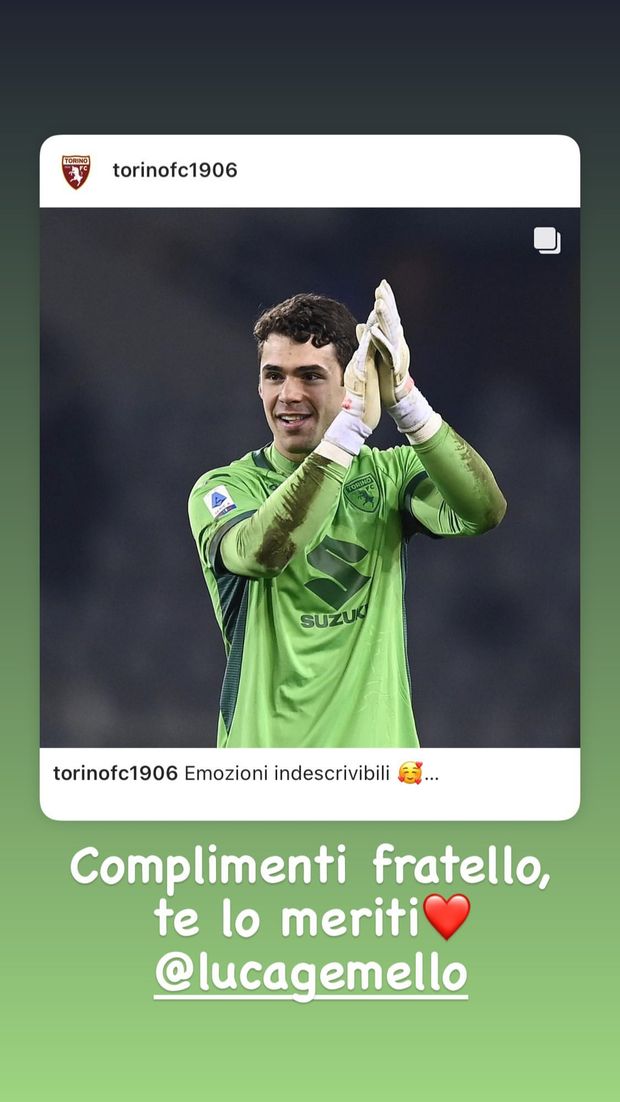 Anche Alessandro Buongiorno e Karol Linetty, che non sono scesi in campo con la Fiorentina, sul rispettivi profili Instagram ufficiali, hanno voluto complimentarsi con Luca Gemello.