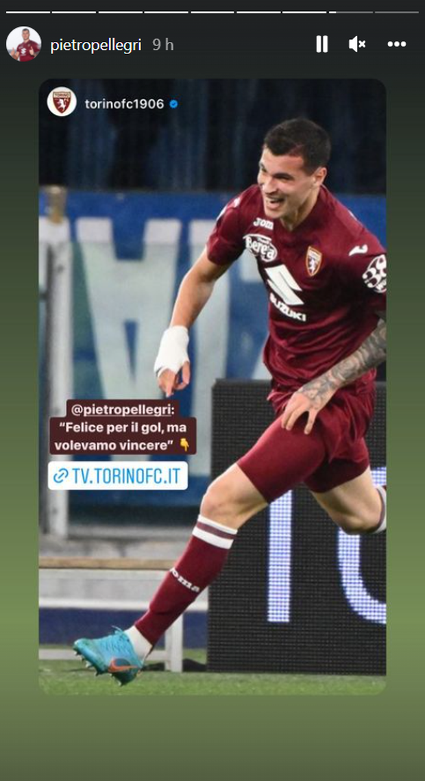 Festeggia a metà Pietro Pellegri dopo il match contro la Lazio. Da un lato la gioia della rete, la prima con il Torino nello stadio in cui aveva segnato il suo primo gol in Serie A; dall'altro le disattenzioni nel finale. Nelle stories di Instagram Pietro riposta i complimenti di Gemello e Vojvoda, poi riporta anche le parole rilasciate a Torino Channel: "Felice per il gol, ma volevamo vincere"
