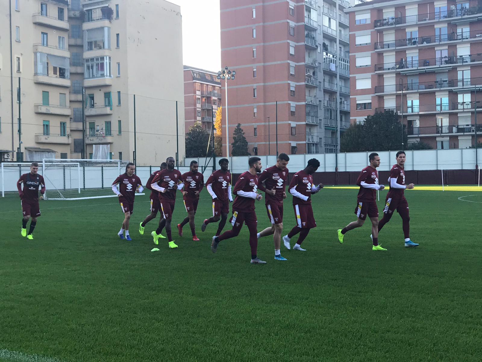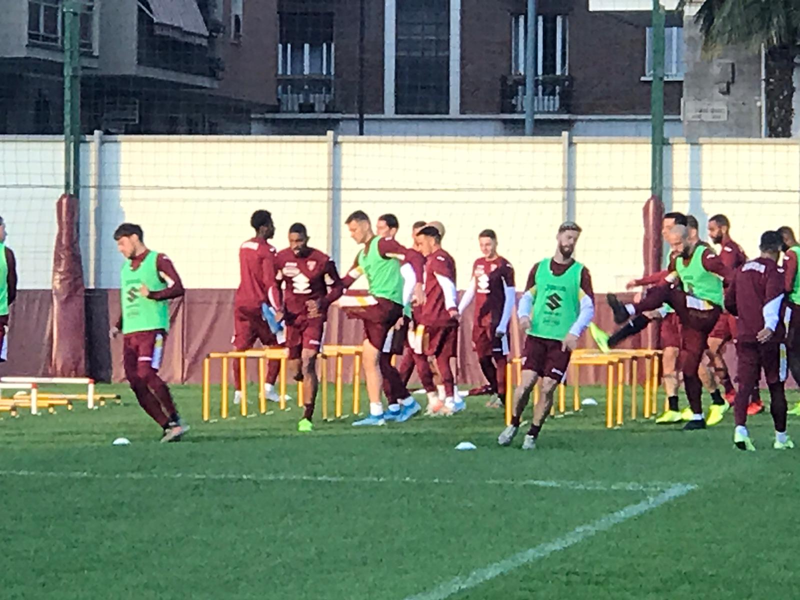 16.12 Granata capitanati da Ansaldi, Rincon e Belotti agli ostacoli per la prima fase di riscaldamento.