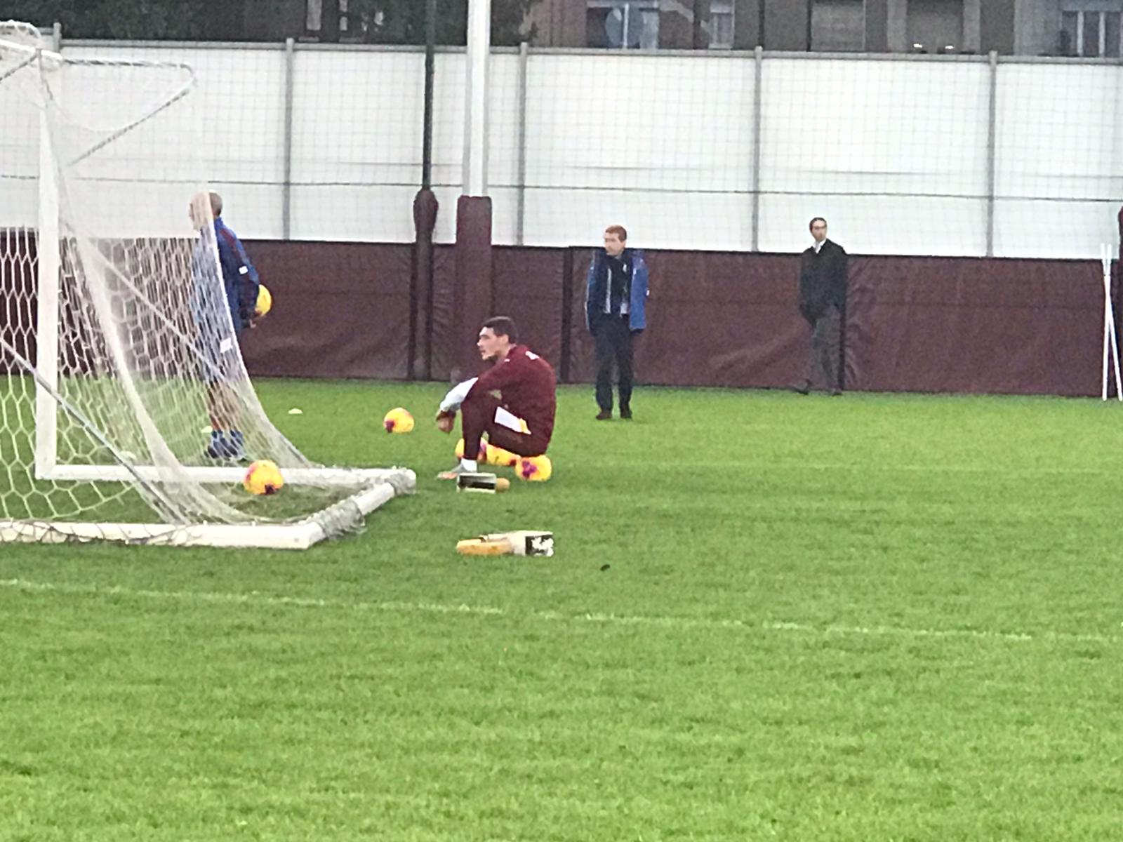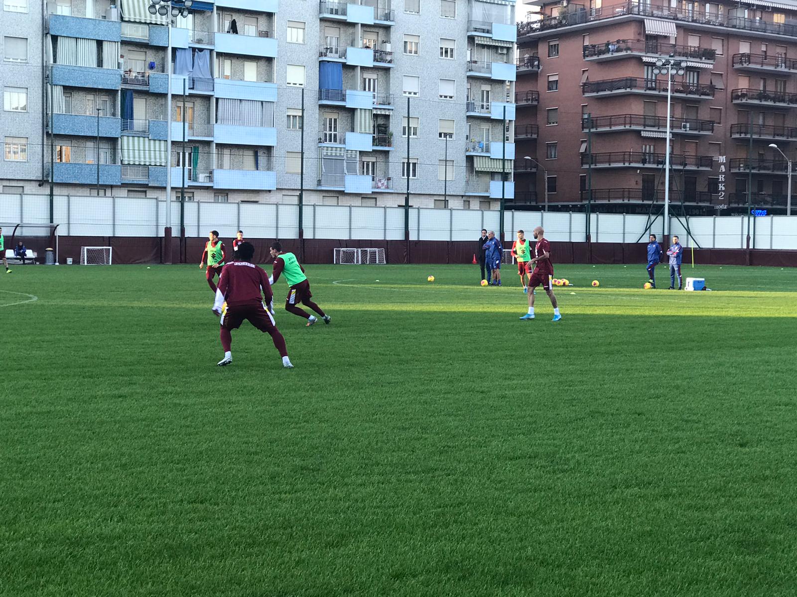17.19 Anche Buongiorno si è accomodato di fianco a Belotti per il finale della partitella.