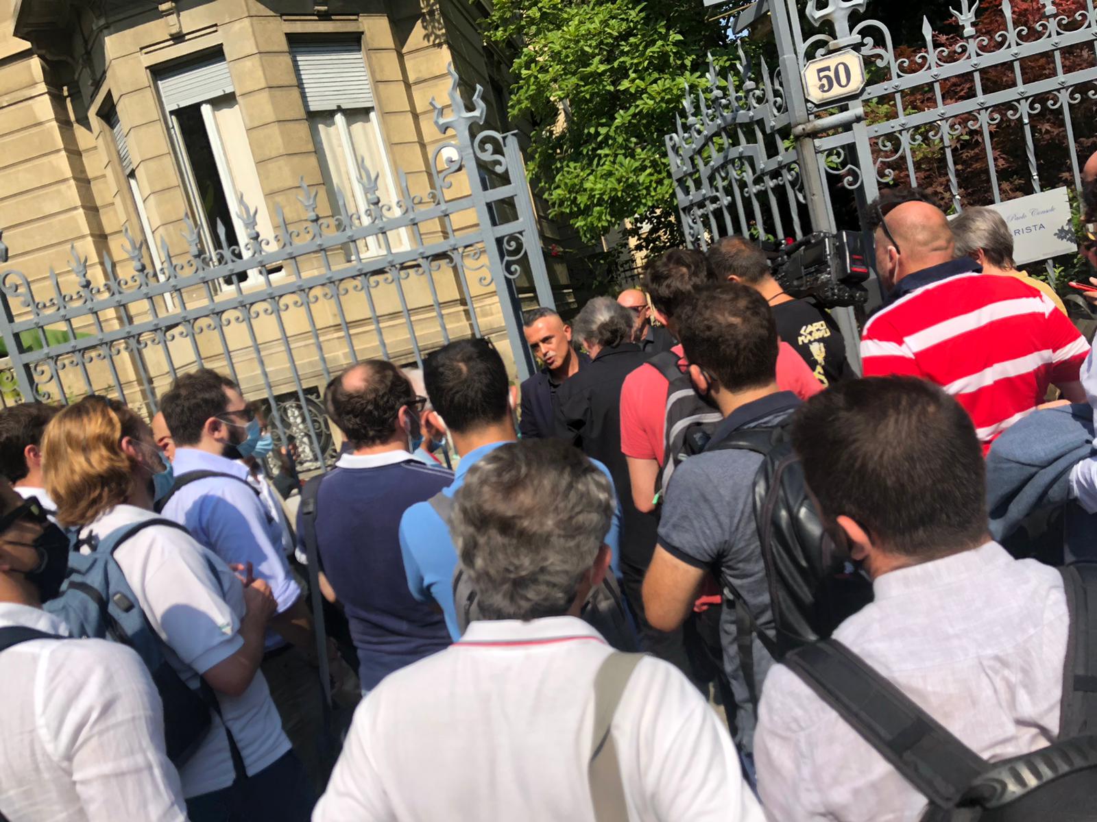 11.06 - Arrivati i relatori della conferenza stampa: Simone Servetti della Console and Partners, gli advisor, e Giuseppe Pipicella che si definisce advisor di una delle parti coinvolte.