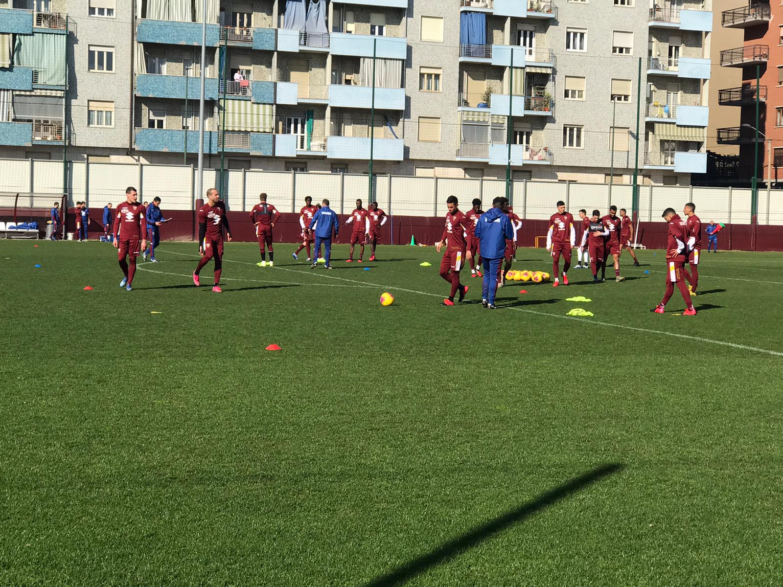 11.20 Millico e Ansaldi i primi a scendere in campo, seguiti poi da Rincon e Verdi.
