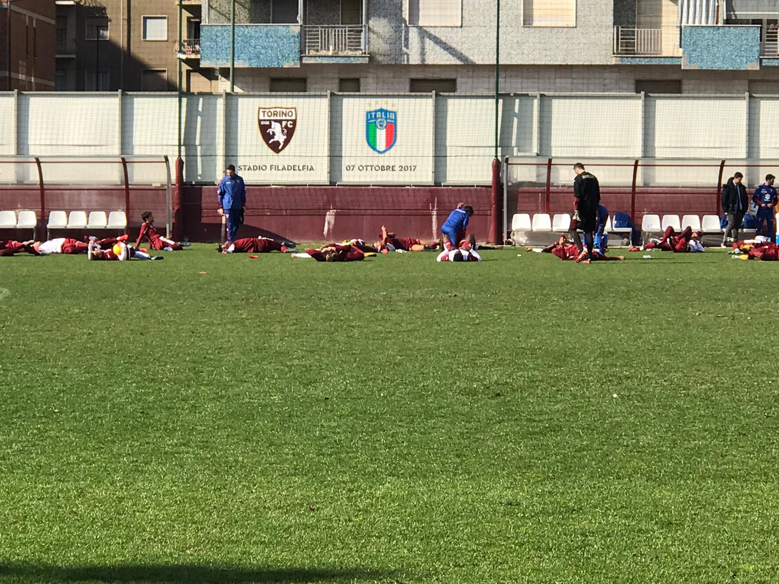 11.25 In campo anche Moreno Longo ora. La squadra inizia esercizi sulla corsa.