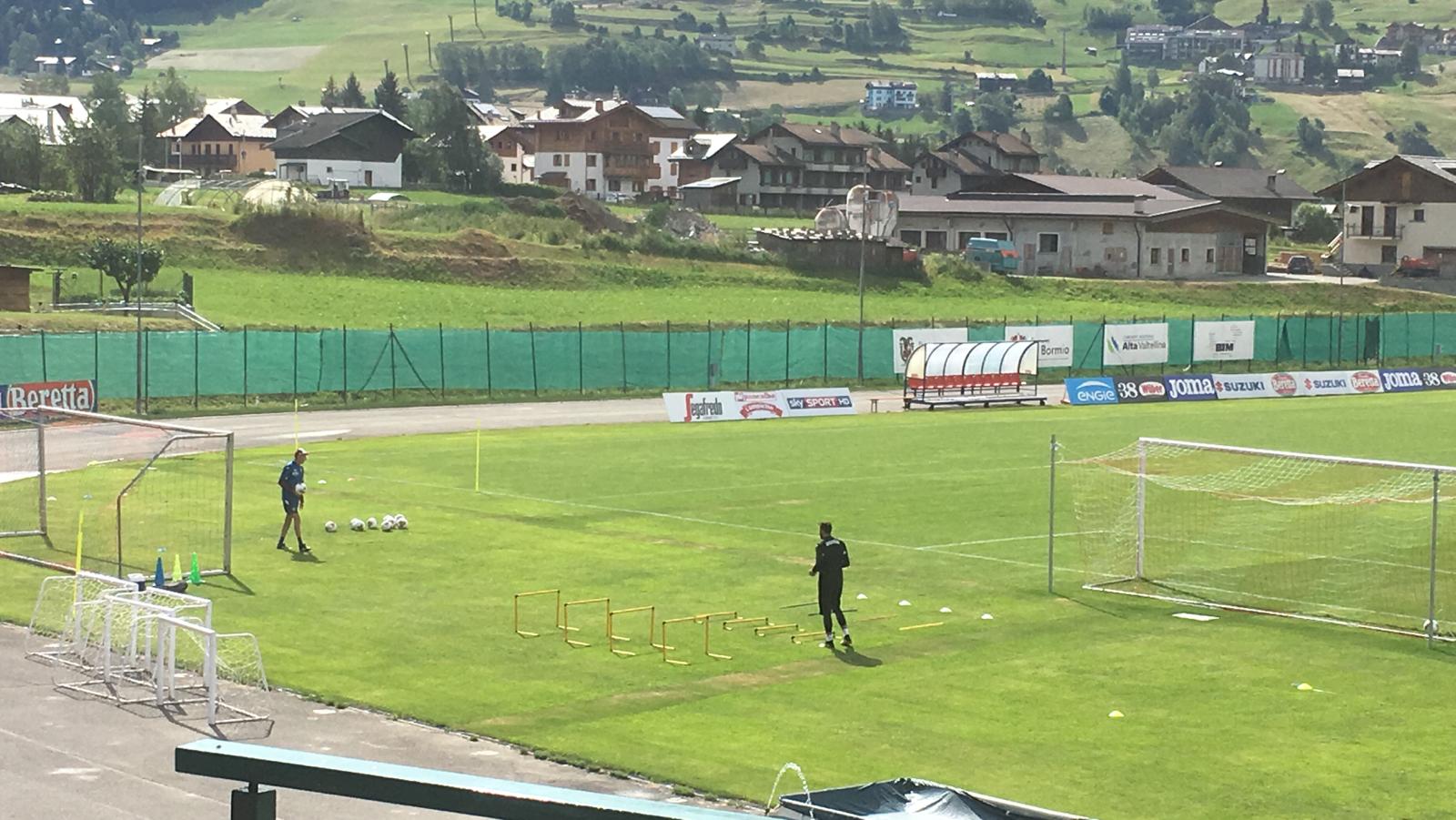 10:49 - L'allenamento è terminato ma alcuni giocatori sono ancora in campo a calciare in porta