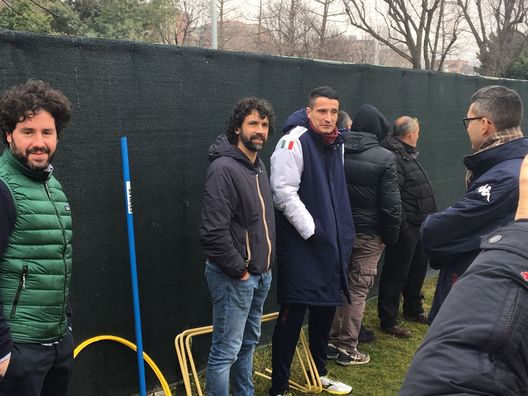 11.40: i titolari di ieri si riscaldano sul campo principale, svolgendo un allenamento di defaticamento. Gli altri invece si preparano a una partitella contro la Primavera sul campo secondario con il pubblico a bordo campo