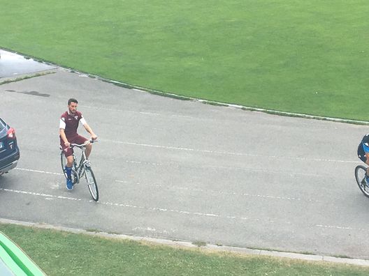 11.35 Compare Valdifiori, dopo aver svolto fisioterapia, rientra negli spogliatoi in bicicletta per non sforzare il polpaccio contuso ieri. Gli chiedono come stia, risponde con un cenno positivo.