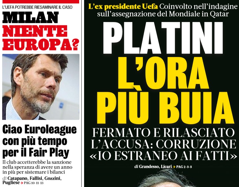 10:28 - La Gazzetta dello Sport in prima pagina: "Milan, niente Europa? Ciao Europa League, con più tempo per il fair play".
