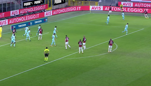 Il Milan di fatto chiude la partita nel primo tempo con il gol su rigore di Kessié. Angolo dalla destra per il Milan, Castillejo batte corto per Brahim Diaz.