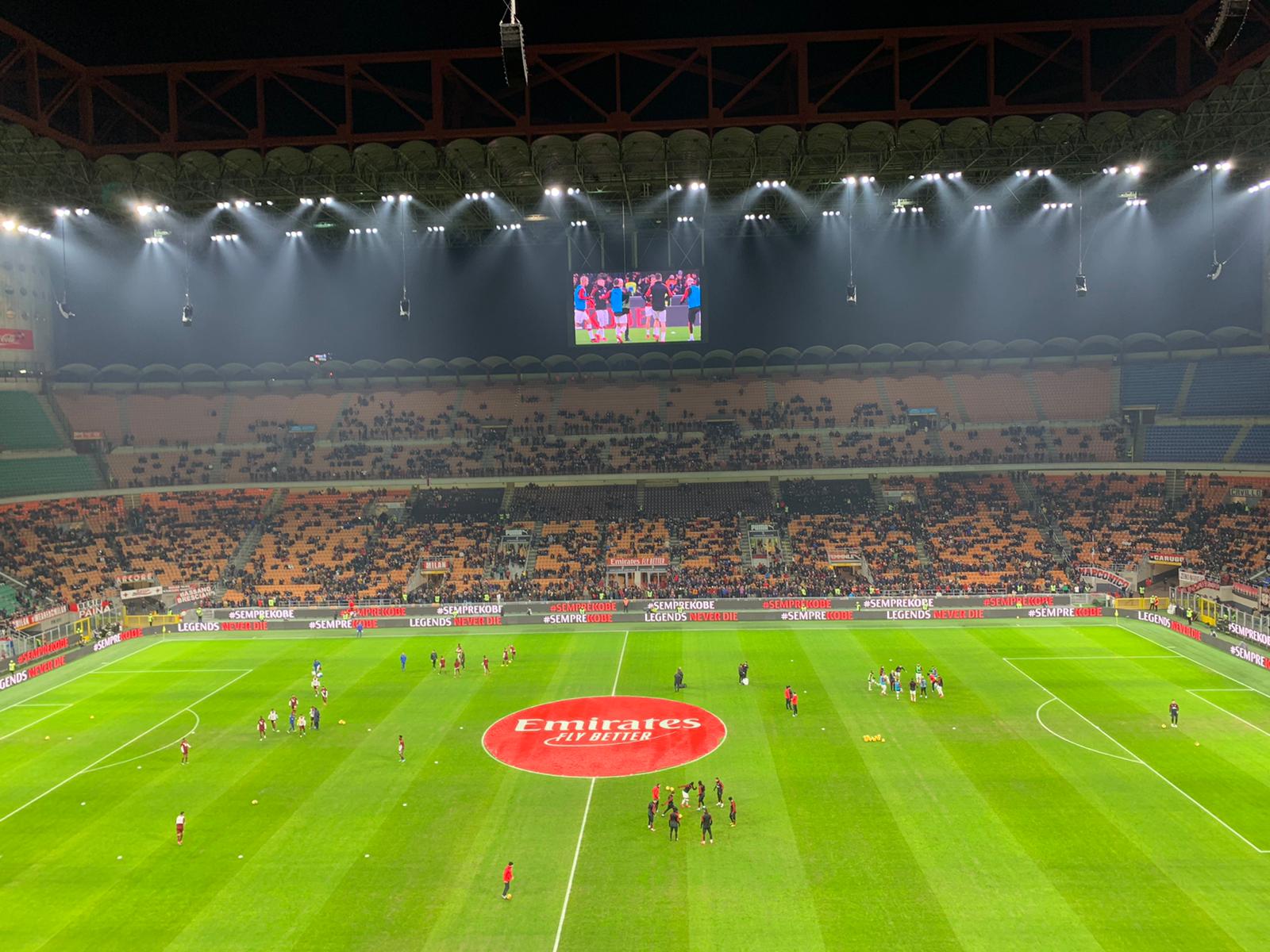 19.40 A San Siro è stata depositata nel terreno di gioco una maglia per Bryant con mazzo di fiori e palla da basket dei Lakers