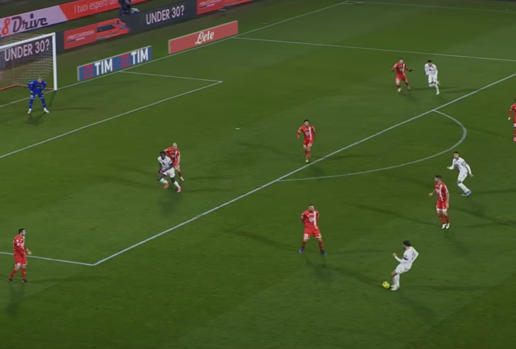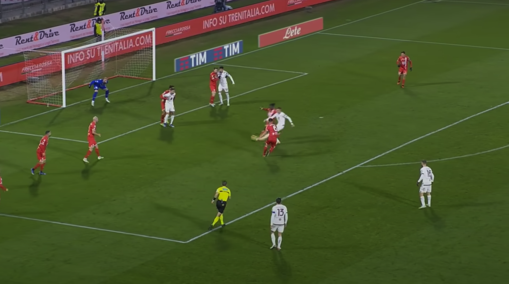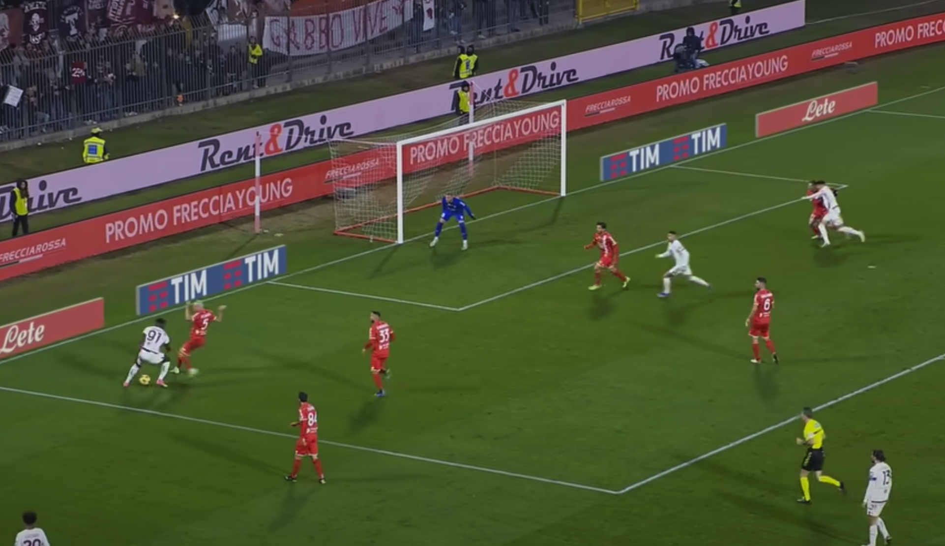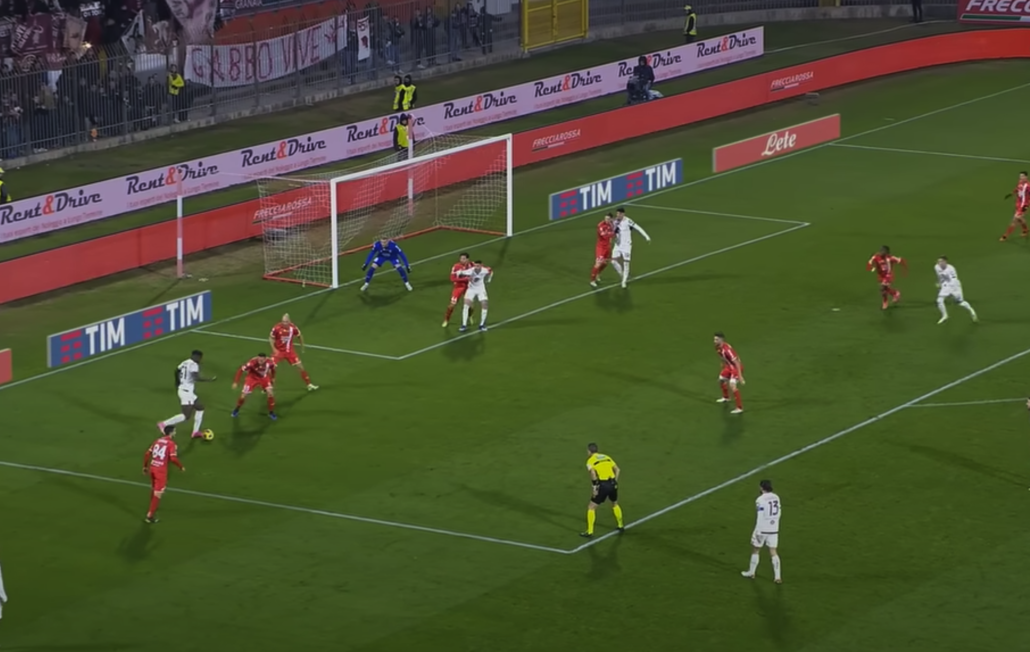 Il gol granata arriva su una situazione evidentemente preparata. Rodriguez sulla trequarti serve sulla verticale Zapata che ha preso posizione su Caldirola e fa un movimento a uscire verso sinistra.