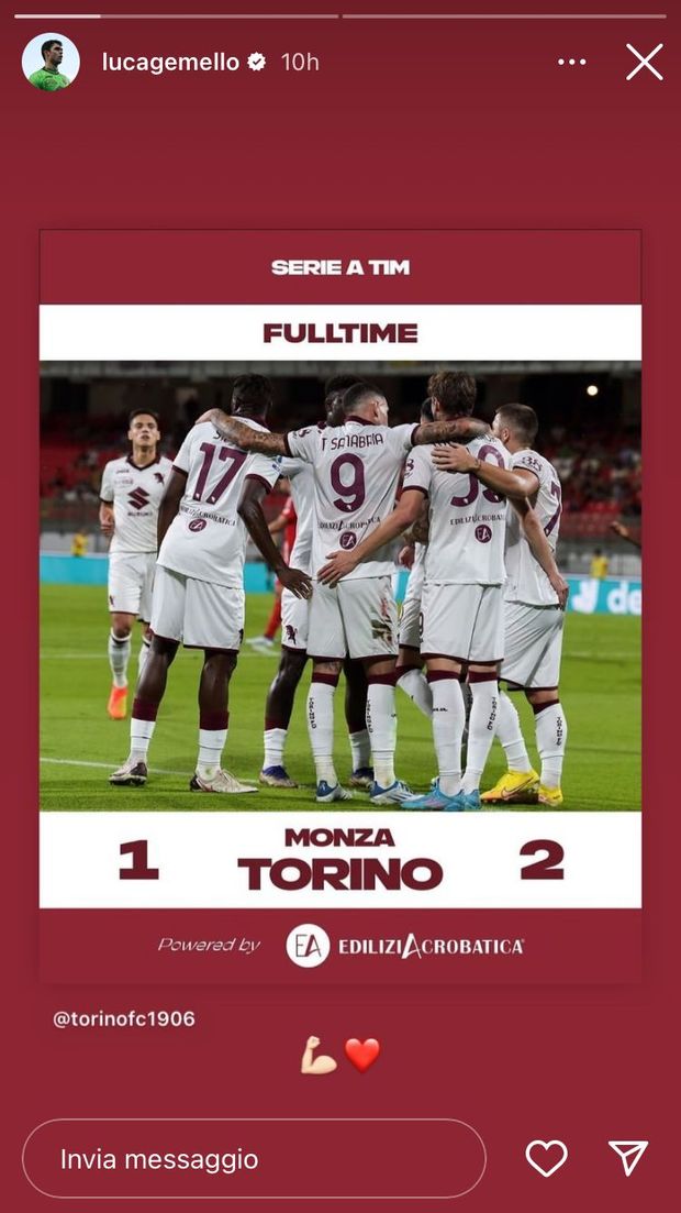 Nonostante il ruolo da terzo portiere che gli concede pochi minuti in campo, Luca Gemello ci tiene sempre ad essere sempre vicino alla squadra e ad esultare dopo ogni vittoria. Anche quest'oggi dopo il successo sul Monza il portiere classe 2000 ha celebrato i 3 punti su Instagram con le emoticon di un bicipite e di un cuore che simboleggiano i suoi sentimenti per la maglia granata.
