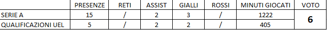 PARTITA TOP - Andamento grossomodo sufficiente per tutto il resto delle gare, tolte sporadiche eccezioni, ma una particolare nota di merito Baselli la guadagna in Atalanta-Torino. In quella gara, la seconda di campionato, il granata è stato autore di ben 2 assist (per Izzo e Bonifazi), e sono stati frequenti gli spunti offensivi. Una prestazione ben sopra la semplice sufficienza, in una giornata particolarmente lieta per il Torino.