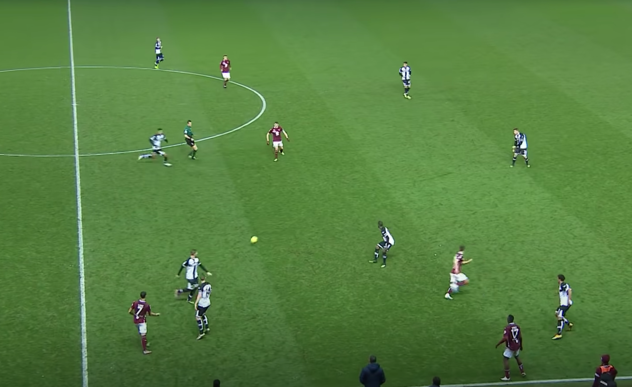 Il Gallo resiste alla carica di Sohm e avanza verso la porta dei ducali. Sul centrodestra, intanto, inizia a farsi vedere Gojak. Belotti vede che il bosniaco è indisturbato e allora lo manda in profondità.