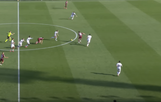 La palla poi va a Che Adams che è chiuso nella morsa di giocatori del Parma.