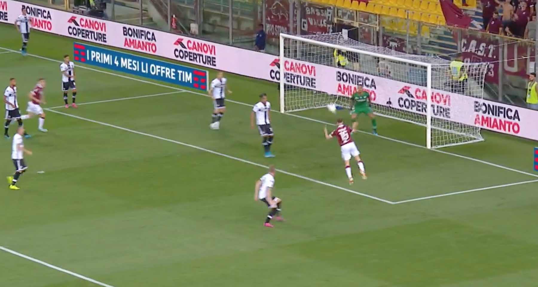 Nel finale di primo tempo, poi, arriva il pareggio del Parma. Il Torino gestisce male una situazione di possesso e la palla va in fallo laterale. I ducali battono in fretta e servono un isolato Kulusevski a centrocampo.