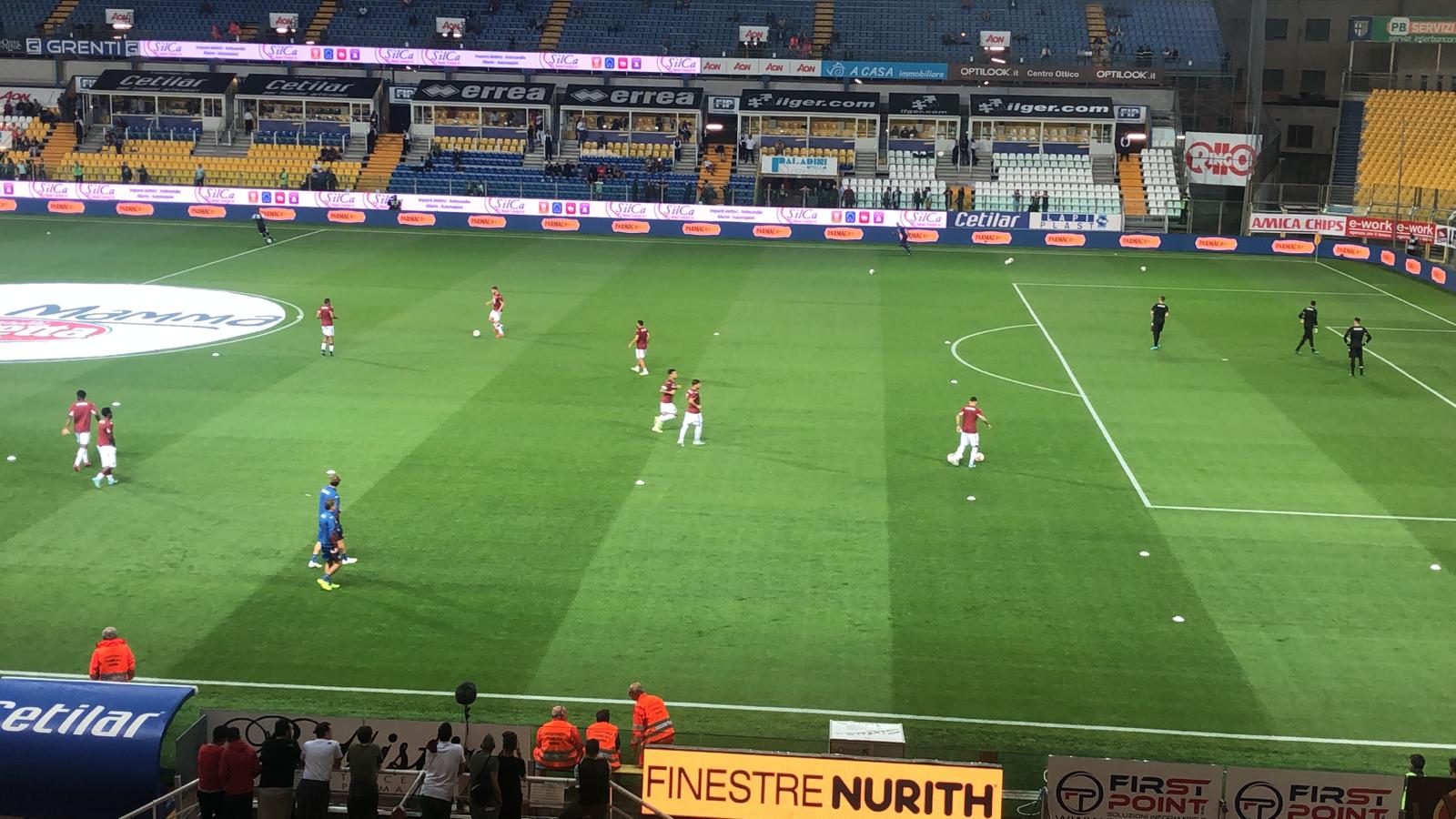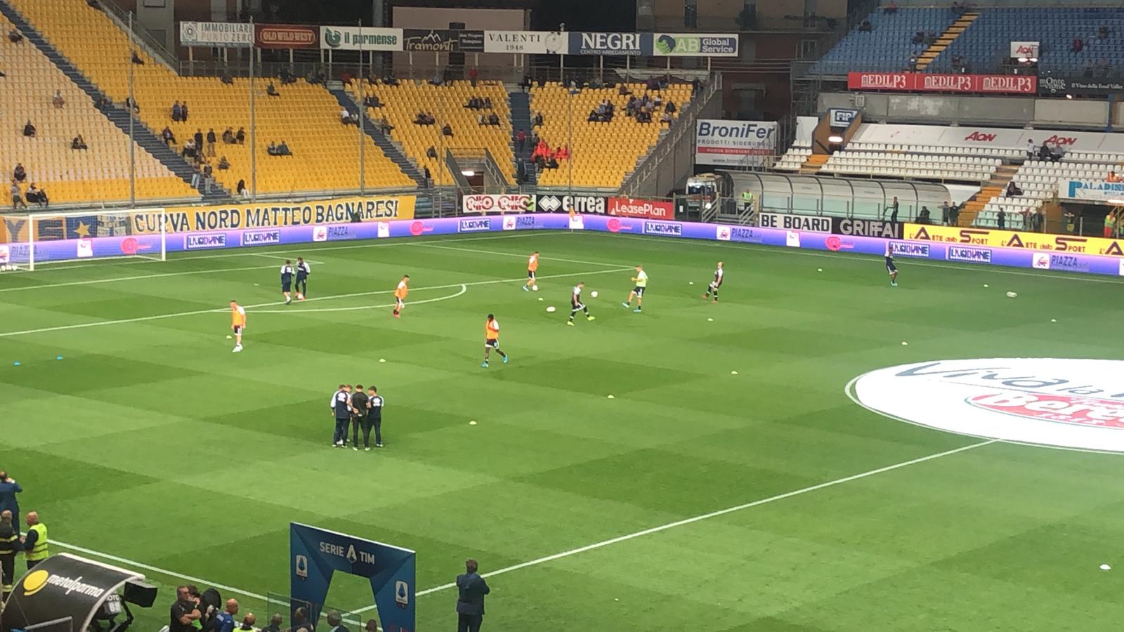 20.07 Comincia il riscaldamento, il Parma scende in campo