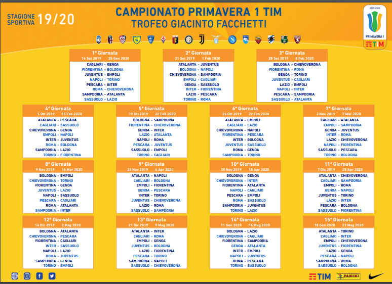 PRIMAVERA 1 TIM 2019/2020, IL CALENDARIO COMPLETO: