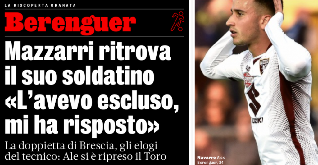 "Personalmente ho sempre avuto una buona opinione di Berenguer, l'ho sempre ritenuto un giocatore prezioso e un ragazzo pulito, che sa stare al suo posto. Quando le rose sono numericamente ampie gli allenatori sono costretti a volte a tenere fuori giocatori che non lo meriterebbero. Ma lui per me è sempre stato affidabile, dà sempre quel che può dare. Se gli devo fare un appunto, è legato al fatto che, secondo me, fa meglio quando entra a gara in corso rispetto a quando parte titolare".
