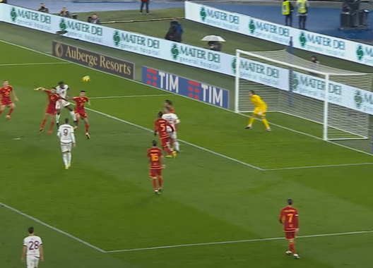 Poi il gol lo costruisce Zapata che salta in mezzo a Cristante e Mancini e deposita in rete.